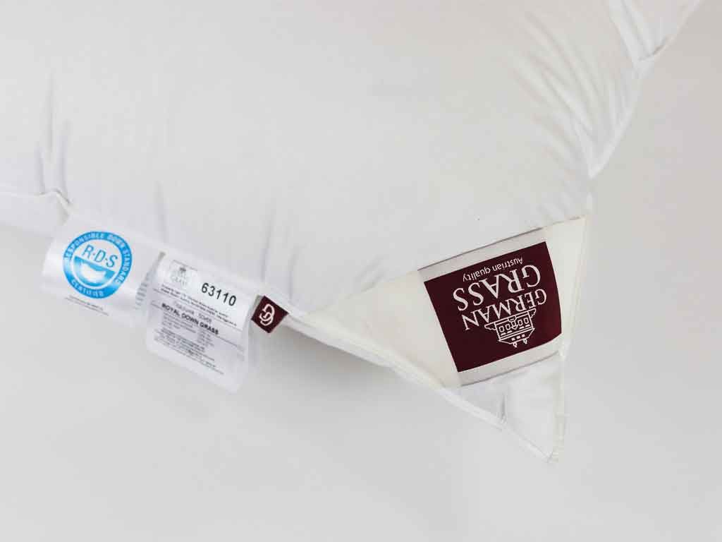 Подушки коллекции 3D ROYAL DOWN GRASS имеют чехлы из немецкой ткани, прошедшей финишную обработку SanProCare® Sensitive и имеющей сертификаты «Bramscher Tuch» и OEKO-TEX® Standard. Сушка этих изделий после стирки требует специальной подготовки, поэтому при уходе в домашних условиях рекомендуется сухая чистка.