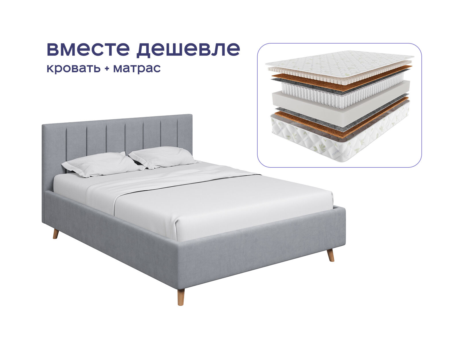 Комплект Амадора + Мистер Слип Multi Line Элит Стронг — это гармония элегантности и умных технологий для сна. Кровать с дизайнерским изголовьем и двусторонний матрас из натуральных материалов создают пространство, где каждая деталь заботится о вашем комфорте, здоровье и эстетике интерьера. Покупая комплект, вы выбираете готовое решение для восстановления сил с выгодой до 36%.