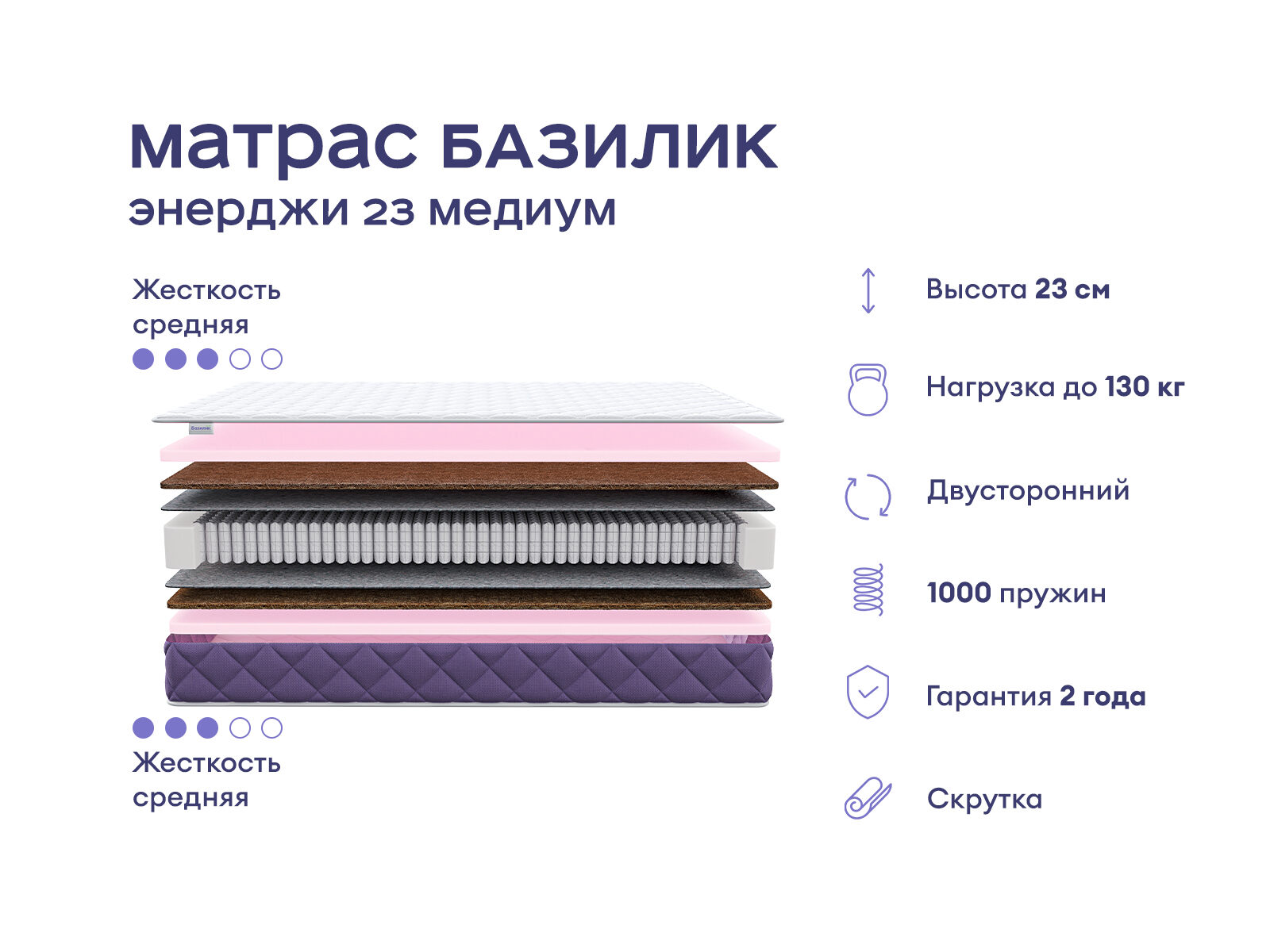 Матрас подарит правильную поддержку и комфорт для глубокого сна. Это сбалансированная ортопедическая модель средней жёсткости, созданная для равномерной поддержки. Симметричная конструкция, две спальные поверхности и независимый пружинный блок делают матрас отличным выбором для комфортного и здорового сна.