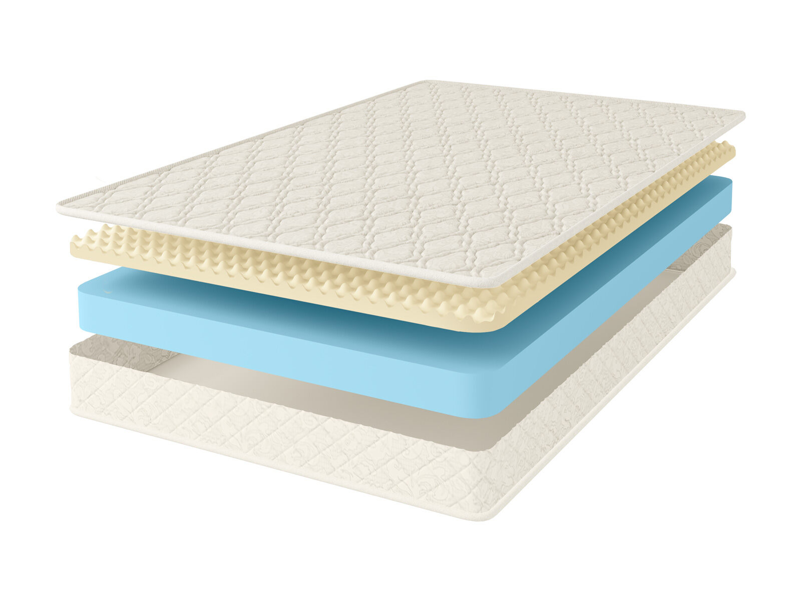 Чехол матраса из хлопкового жаккарда, который обладает высокой износостойкостью, простеган на Холлконе и имеет очень длительный срок службы. Ткань чехла может немного отличаться по рисунку, а также по оттенку цвета, это не влияет на ее свойства и качество.