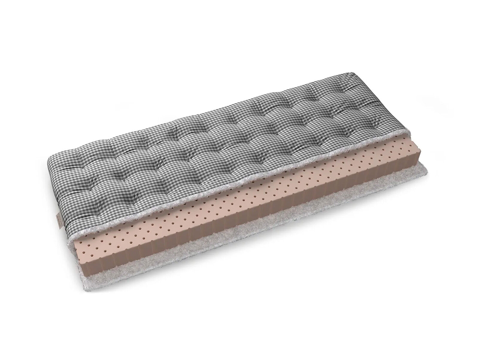 Самый популярный настил. Рулонный латекс отличный и долговечный, хорошо распределяет нагрузку, имеет ортопедический эффект. За счёт упругости латекса давление на сосуды и мышцы во время сна оказывается минимальным. Латекс – уникальный материал с точки зрения индустрии сна. Он прекрасно используется в качестве самостоятельной основы.