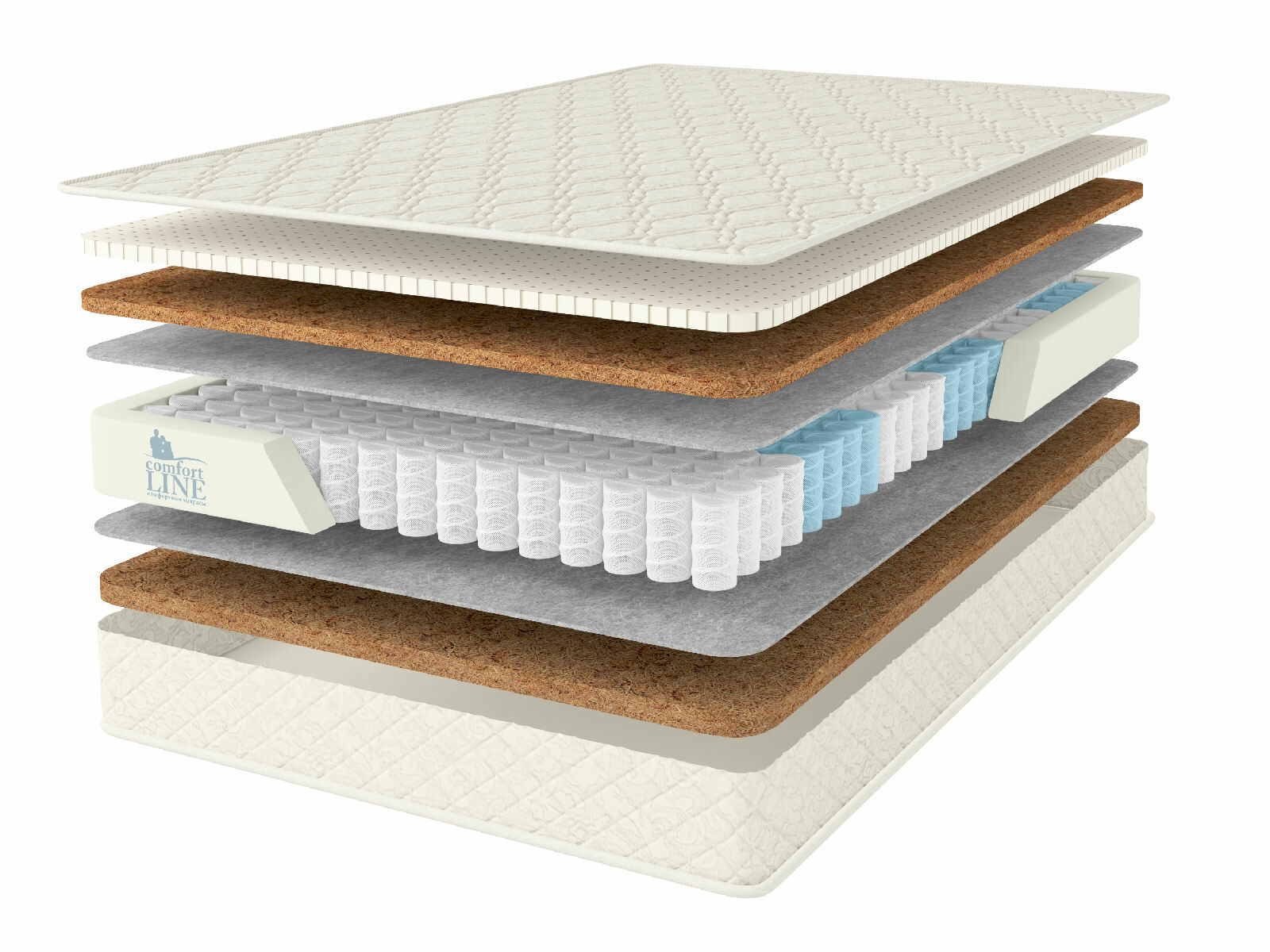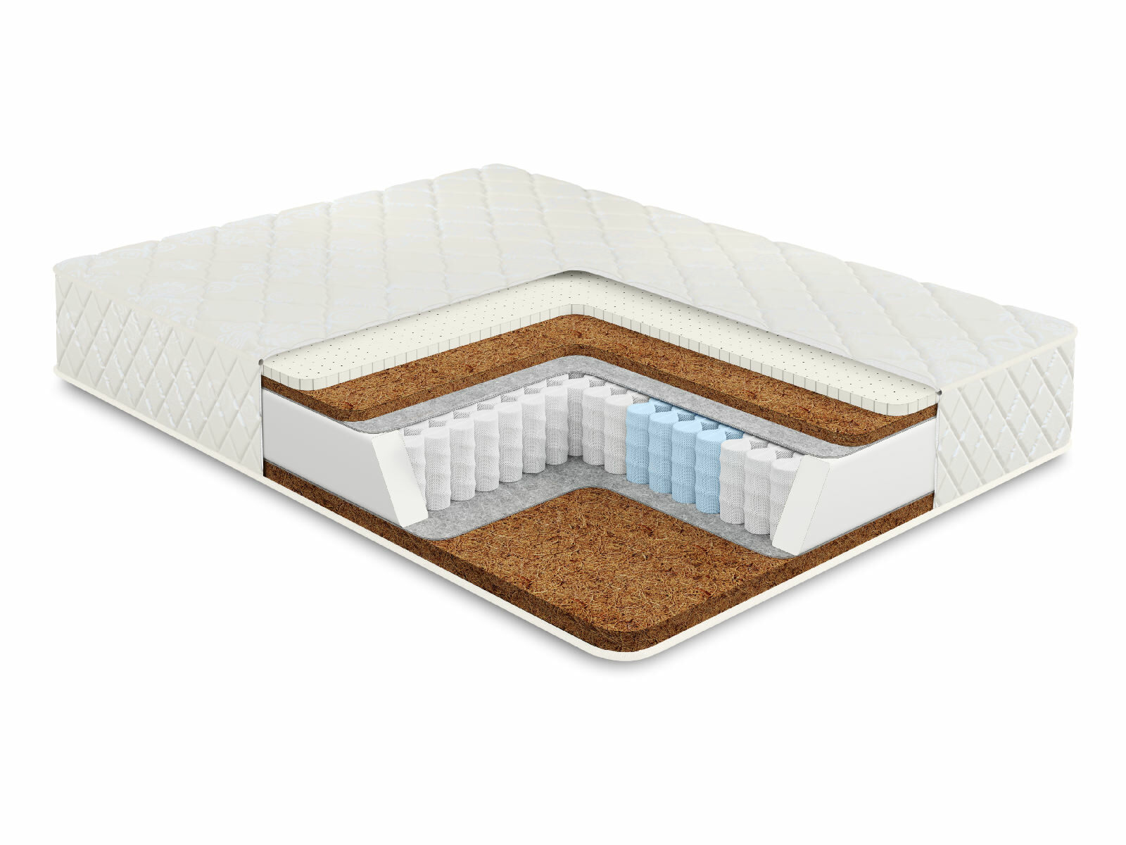 Наполнением для матраса выступают толстые слои кокосовой койры и латекса. Если свойства нежного латекса давно и хорошо известны каждому – это мягкий и высокоэластичный материал большого комфорта, то с кокосом знакомы далеко не все. В то же время данный наполнитель обладает целым рядом преимуществ – он оказывает великолепную ортопедическую поддержку для спины, хорошо вентилируется, гигиеничен и не вызывает аллергий. Вот почему койра так ценится, а в сочетании с латексом обеспечивает матрасу высококлассные свойства.