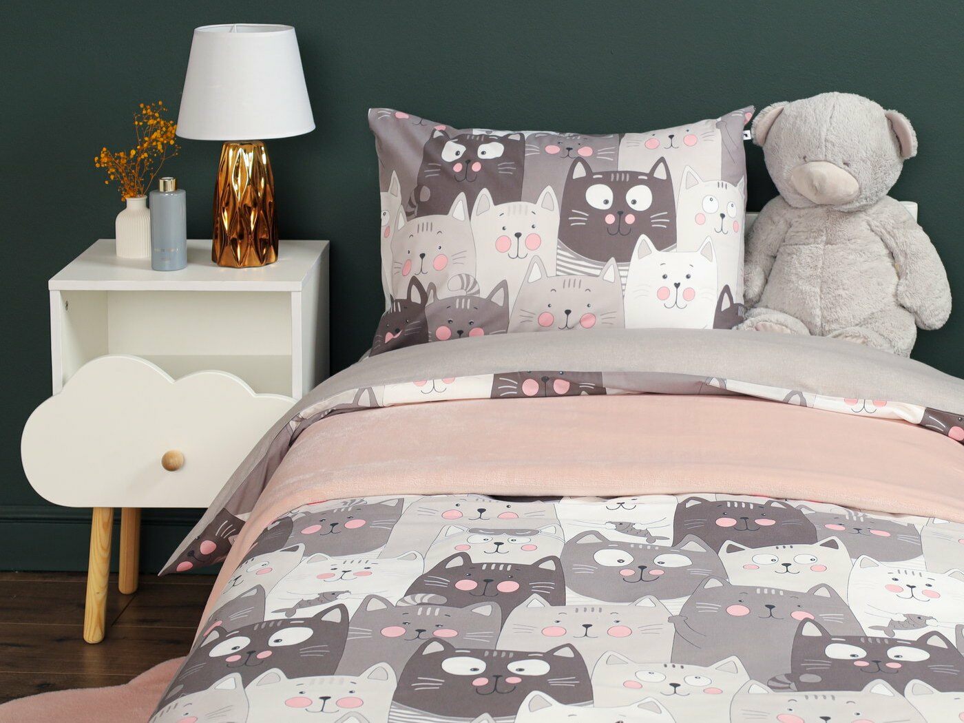 Пододеяльник –двусторонний: верх из ткани А (принтованная ткань), обратка из ткани В (однотонная рогожка), с потайной молнией.