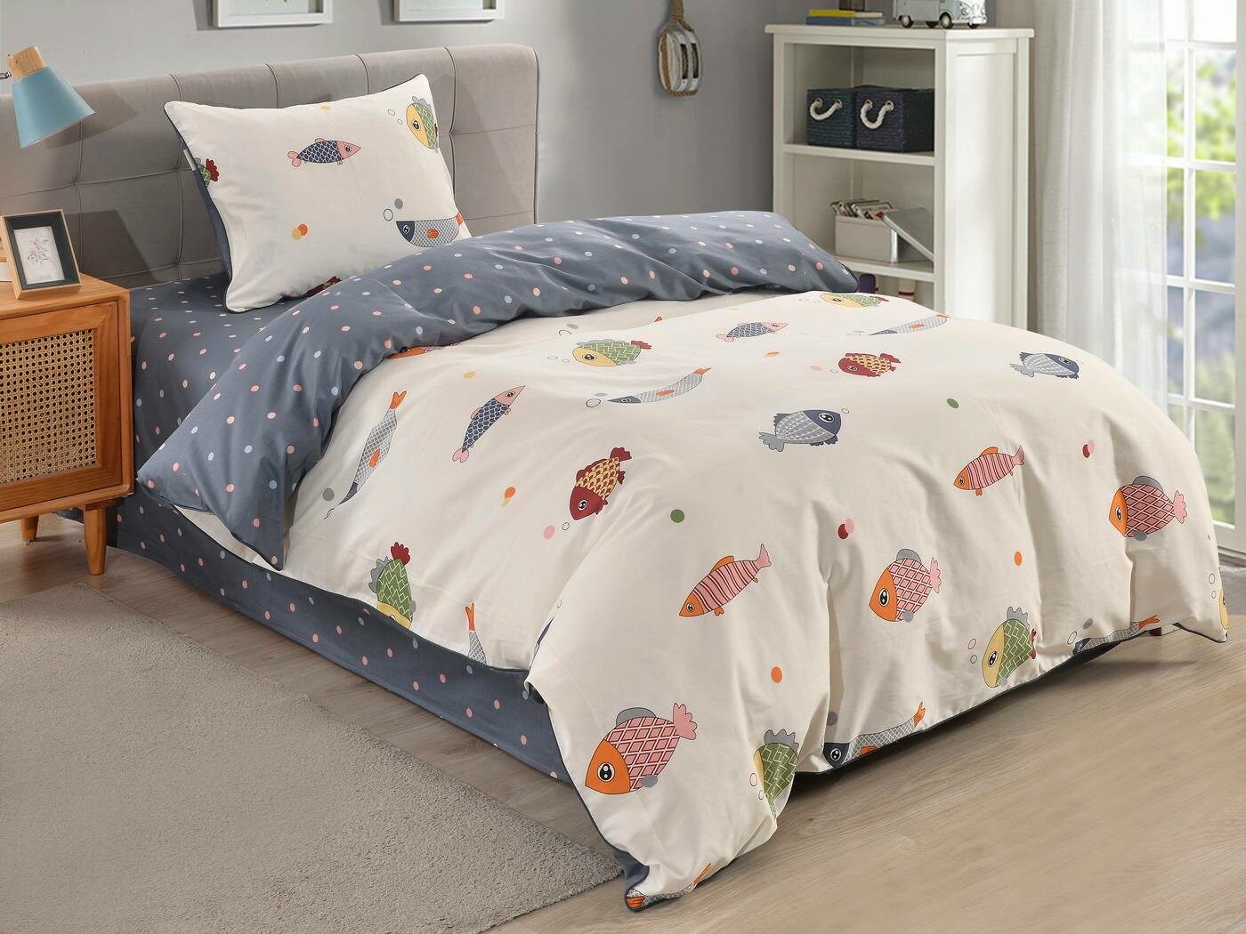 Комплекты выполнены из 100% хлопка, он гарантирует качественный сон, т.к. натуральная ткань хорошо впитывает влагу и позволяет коже дышать. Натуральные материалы не вызывают аллергии. Огромная палитра оттенков и яркие дизайны комплектов понравятся детям и подросткам.