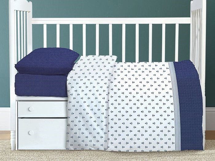 Комплект детского постельного белья в кроватку из сатина (100% хлопок, плотность 128 г/м2). Упаковка: ПВХ.