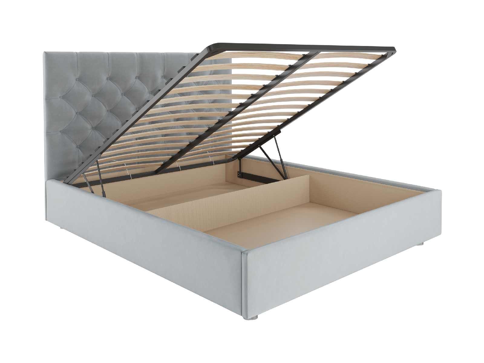 В комплектации с подъемным механизмом кровать имеет вместительный бельевой короб с двумя отделениями.