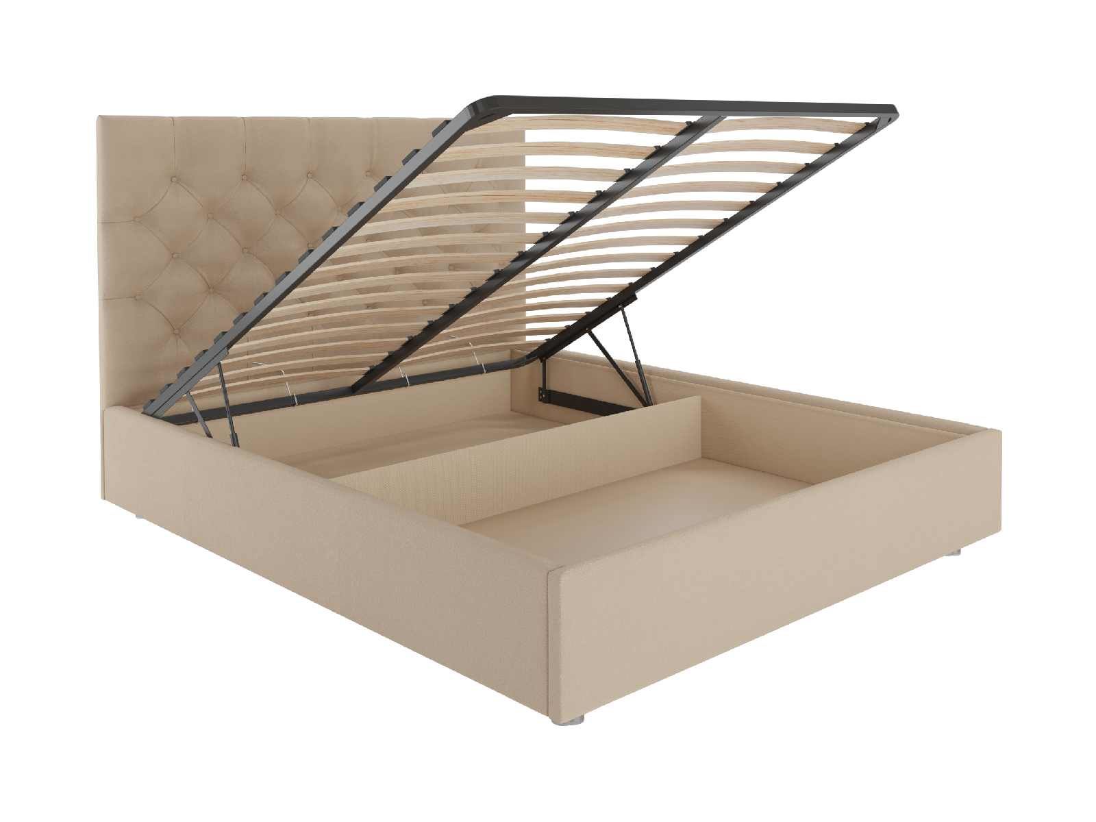 В комплектации с подъемным механизмом кровать имеет вместительный бельевой короб с двумя отделениями.