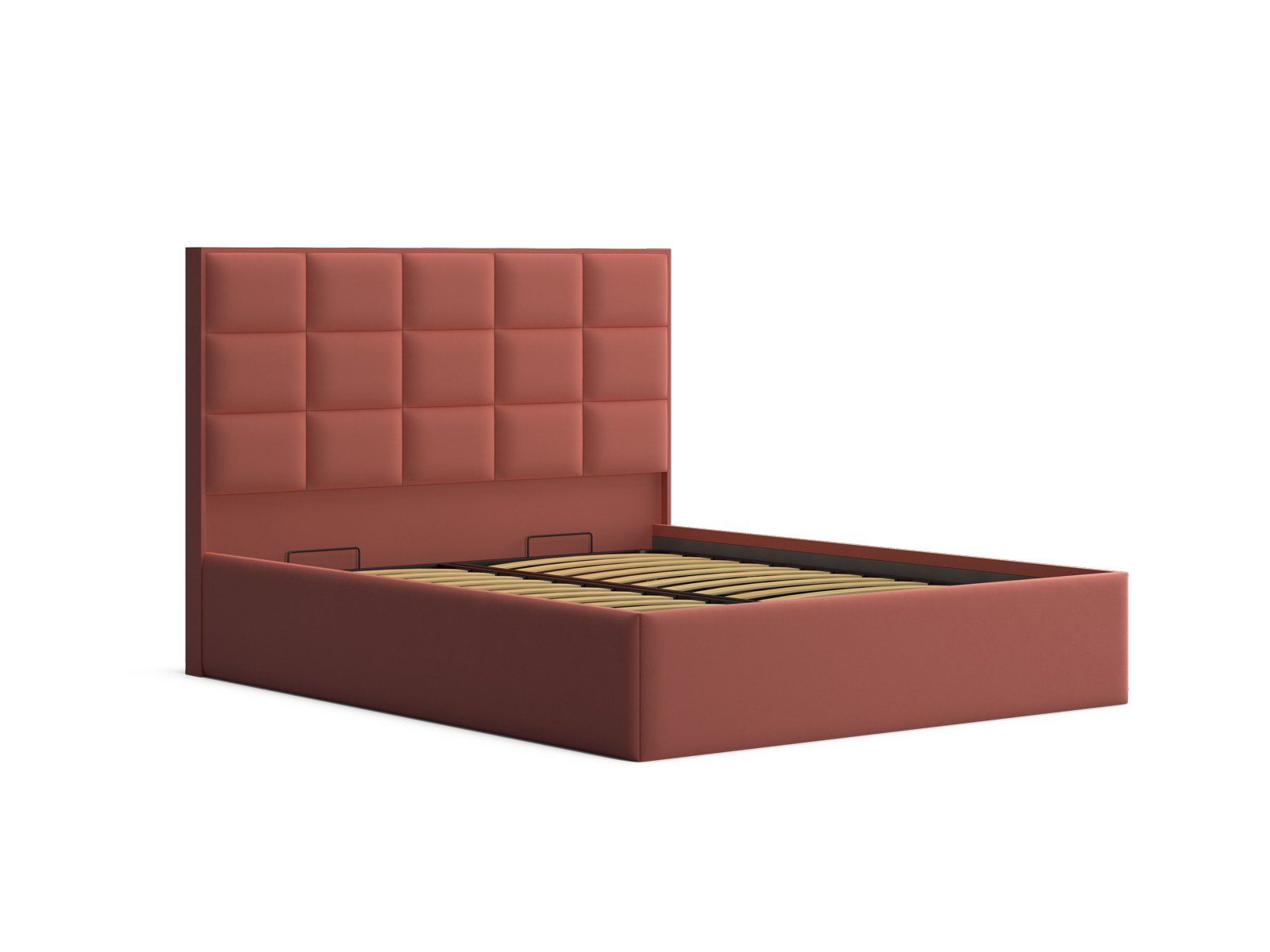 Мягкая кровать с обивкой из велюра.