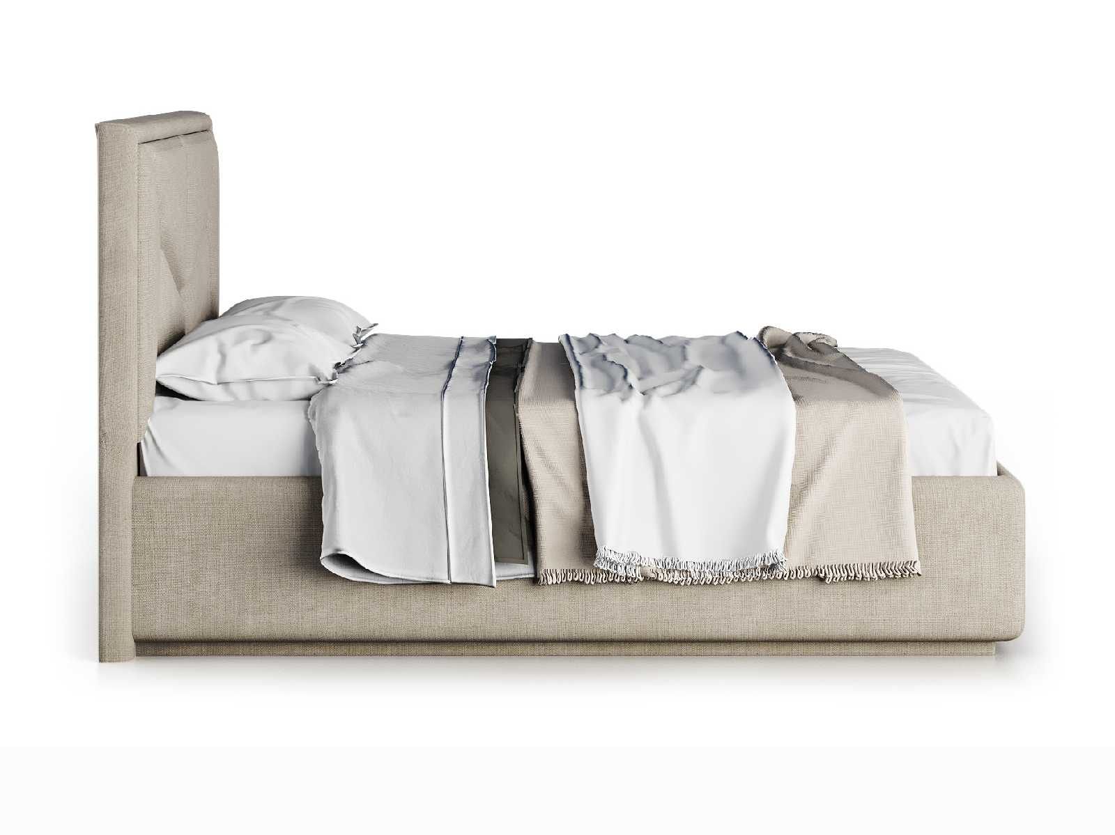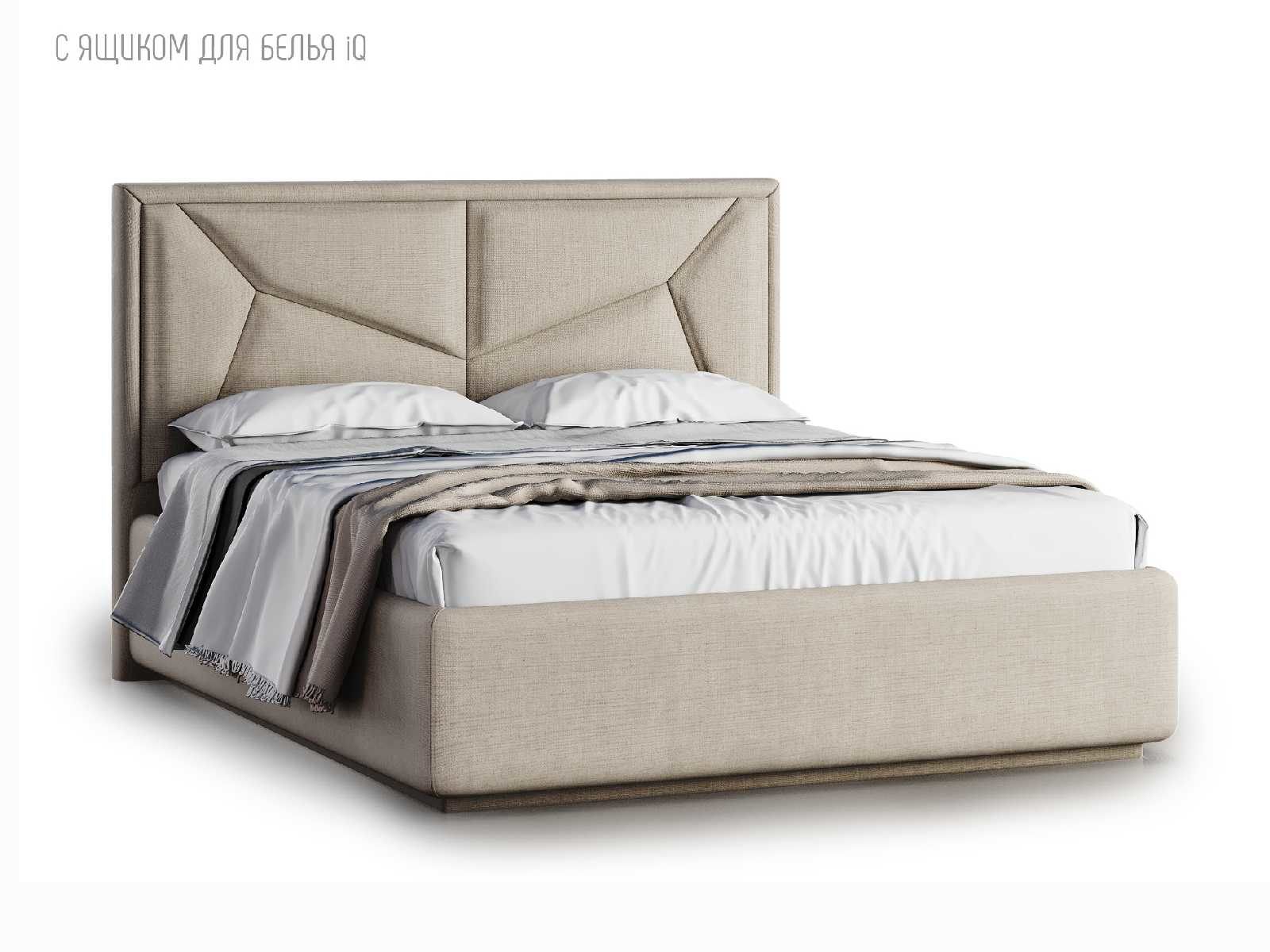 Кровать укомплектована IQ с подъемным механизмом и ящиком для белья без дна (дополнительная платная опция - дно к ящику IQ из HDF (ХДФ). Каркас кровати на цоколе, декоративный чехол на цоколе съёмный. Глубина ящика для белья - 30 см, без ограничения нагрузки на ящик.