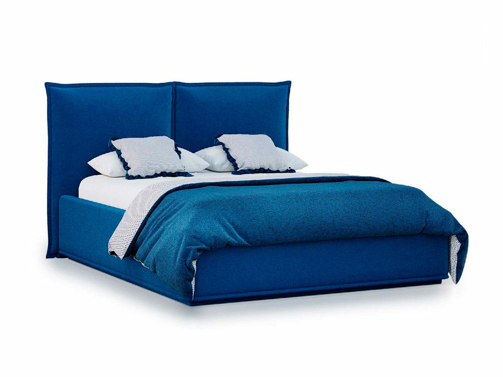 Кровать укомплектована IQ с подъемным механизмом и ящиком для белья без дна (дополнительная платная опция - дно к ящику IQ из HDF (ХДФ). Каркас кровати на цоколе, декоративный чехол на цоколе съёмный. Глубина ящика для белья - 30 см, без ограничения нагрузки на ящик.