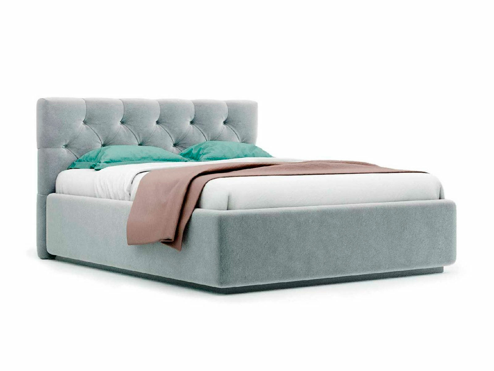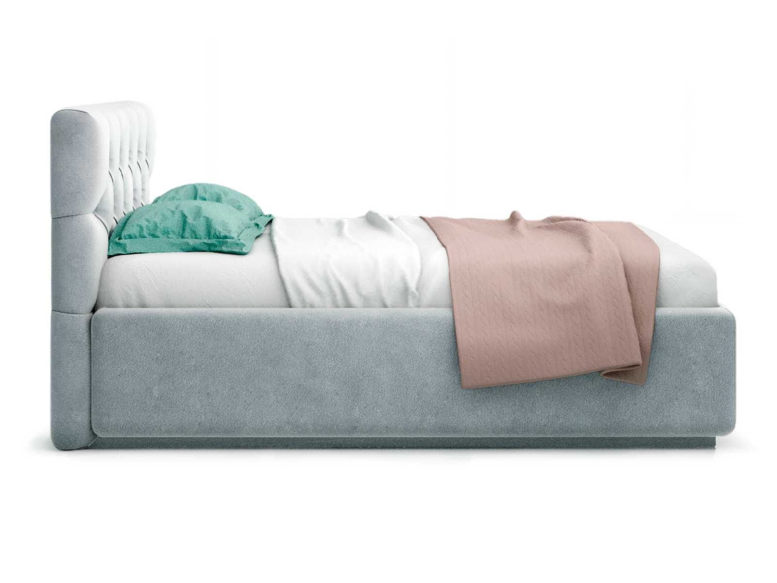 Кровать укомплектована IQ с подъемным механизмом и ящиком для белья без дна (дополнительная платная опция - дно к ящику IQ из HDF (ХДФ). Каркас кровати на цоколе, декоративный чехол на цоколе съёмный. Глубина ящика для белья - 30 см, без ограничения нагрузки на ящик.
