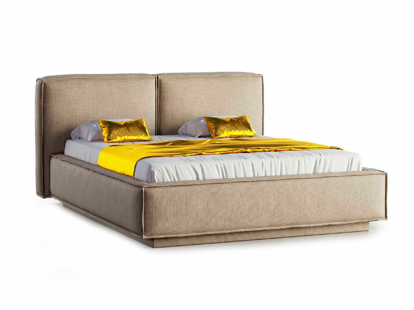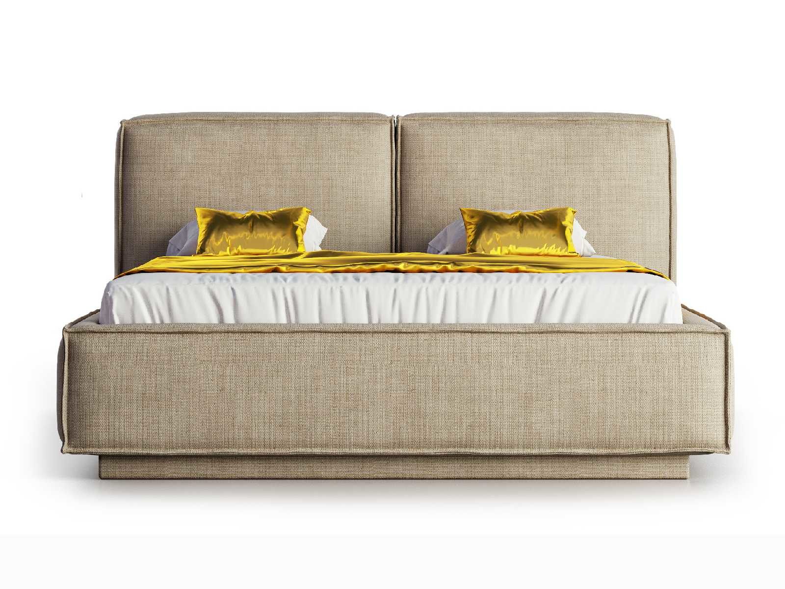 Изголовье выполнено в виде двух объемных прямых подушек, изготовленных по принципу подушек для диванов: умеренно-жесткая основа для поддержки спины во время отдыха и мягкий верхний слой из гипоаллергенного наполнителя с эффектом легкого утопания и свойствами быстрого восстановления первоначальной формы. Усилено 4-мя ножками.