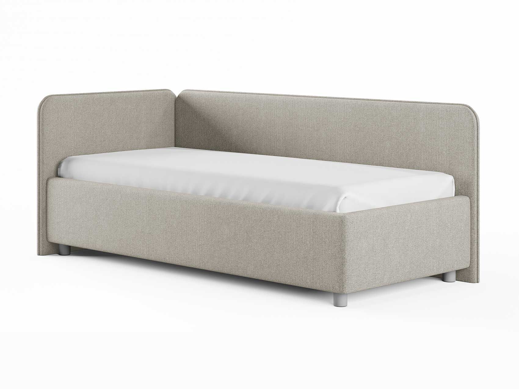 Односпальная кровать в современном стиле. Кровать-софа с одной боковой спинкой. Идеально подходит для квартир с небольшой площадью, детских и подростковых спален, гостевых комнат. Боковую спинку кровати можно изготовить на выбор на правую или левую сторону. Модель изготовлена из ДСП.
