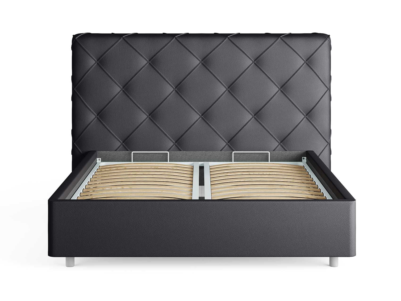 Кровать комплектуется металлическим основанием (без опор), которое имеет 13 рядов встроенных березовых ламелий на каждое спальное место, обеспечивая равномерное распределение нагрузки.