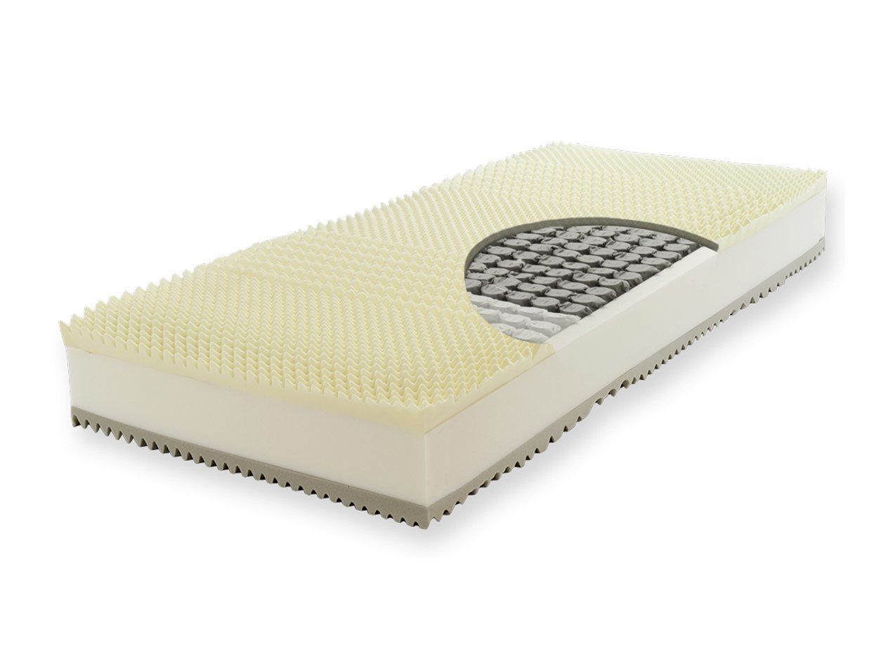 В основе - материалы последнего поколения без свинца и формальдегидов: базовый слой - независимые пружины минипакет (688 пружин на 1 спальное место) высотой 14 см и анатомический слой с микромассажным эффектом (около 4 см) с каждой стороны. Благодаря микро-шипикам - одна сторона матраса лучше вентилируется и ослабляет давление, оказываемое матрасом на тело. Матрас рекомендован людям с заболеваниями кровообращения, варикозным расширением вен и др.