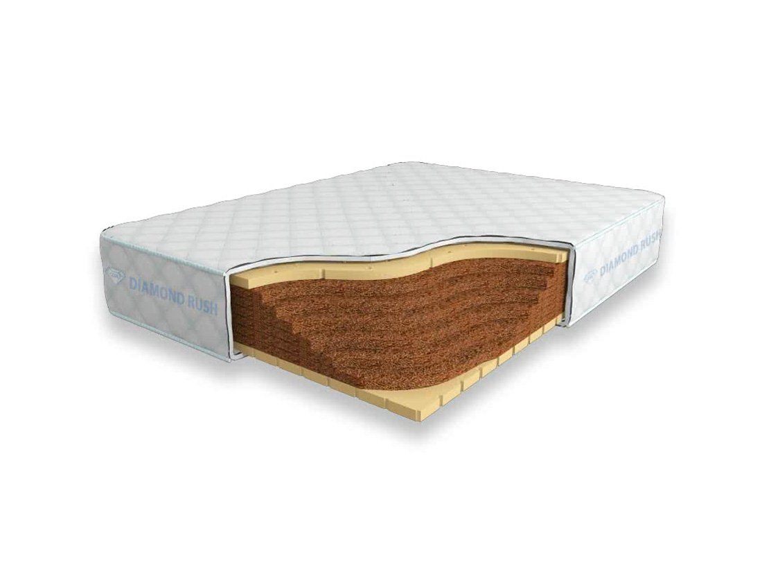 Матрас Diamond Rush Cocos Lite 24 DR является беспружинным. В основе модели идут кокосовые плиты, сверху и снизу для большего комфорта и придания средней жесткости прокладываются листы по 3см натурального перфорированного латекса.