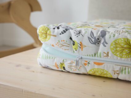 Матрас поставляется в красочном детском чехле из хлопковой бязи. Обивка имеет молнию, поэтому её удобно снимать для стирки и уходом за матрасом.