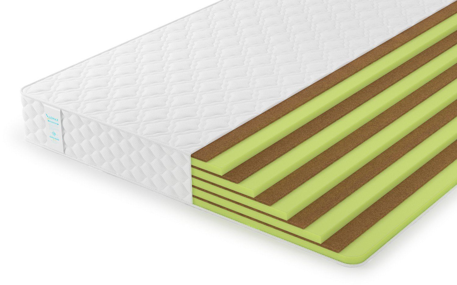 Как уже упоминалось, внутри матраса попеременно расположились 5 плит койры кокоса и 5 плит высокоэластичной пены. Материалы объединяет гиполлергеность и гигиеничность, но разница между наполнителями всё же существенна.