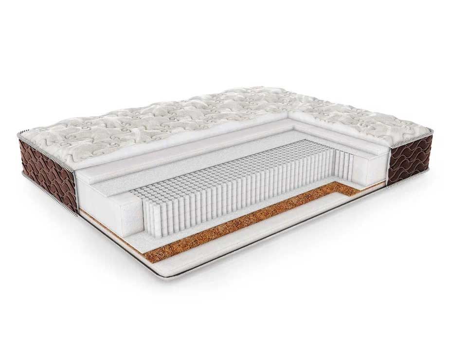 В число наполнителей изделия входит натуральная кокосовая и койра, ППУ и слои хлопкового войлока. Последний проложен с двух сторон от плиты койры и выступает в качестве защитного материала. Присутствие белого войлока обеспечивает усиленную поддержку матраса, а также способствует переносу большого давления – до 120 кг на спальное место.