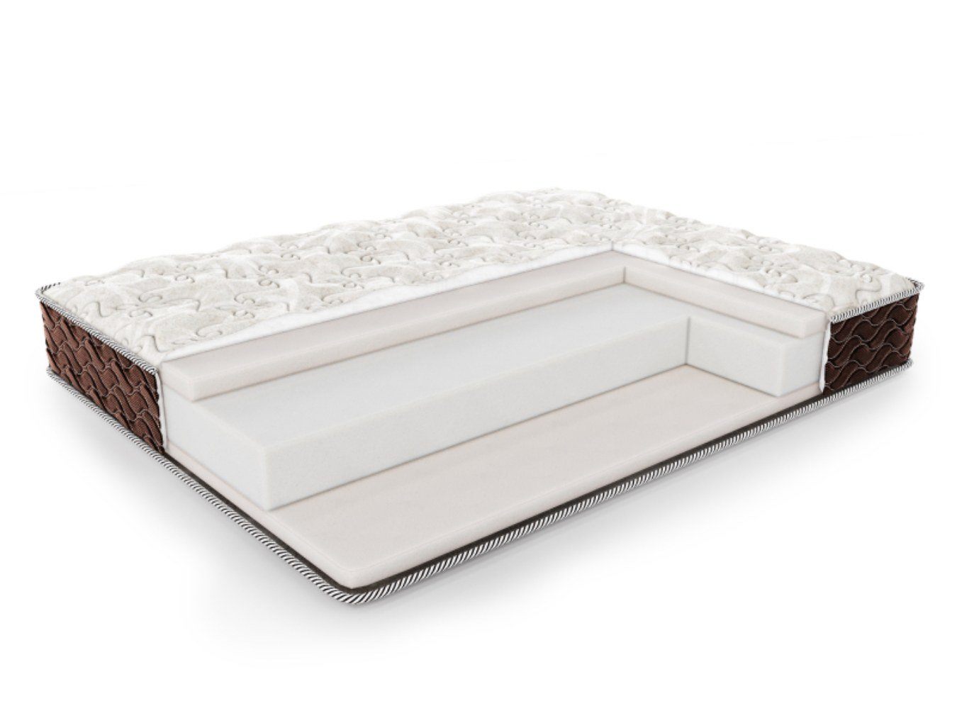 Каждая из поверхностей матраса получила равное количество наполнителя ППУ. В спальной принадлежности установлены два 6 см слоя пенополиуретана.