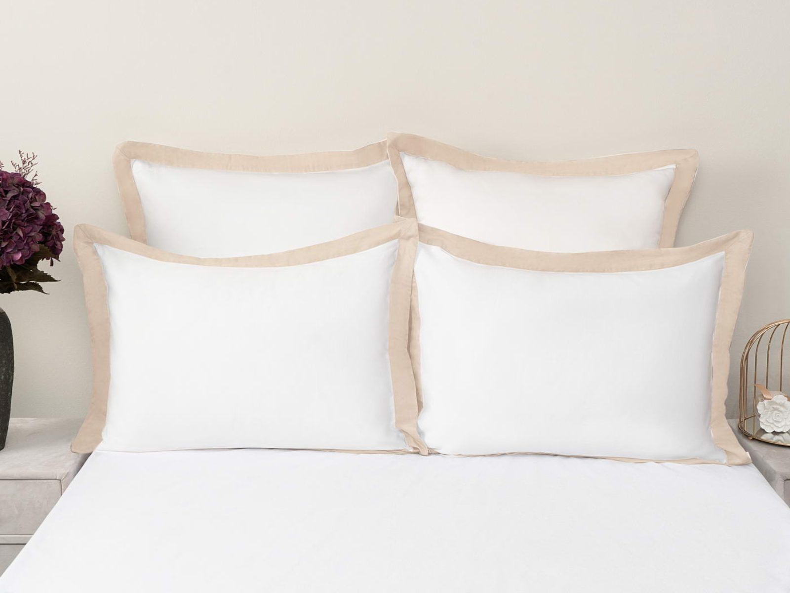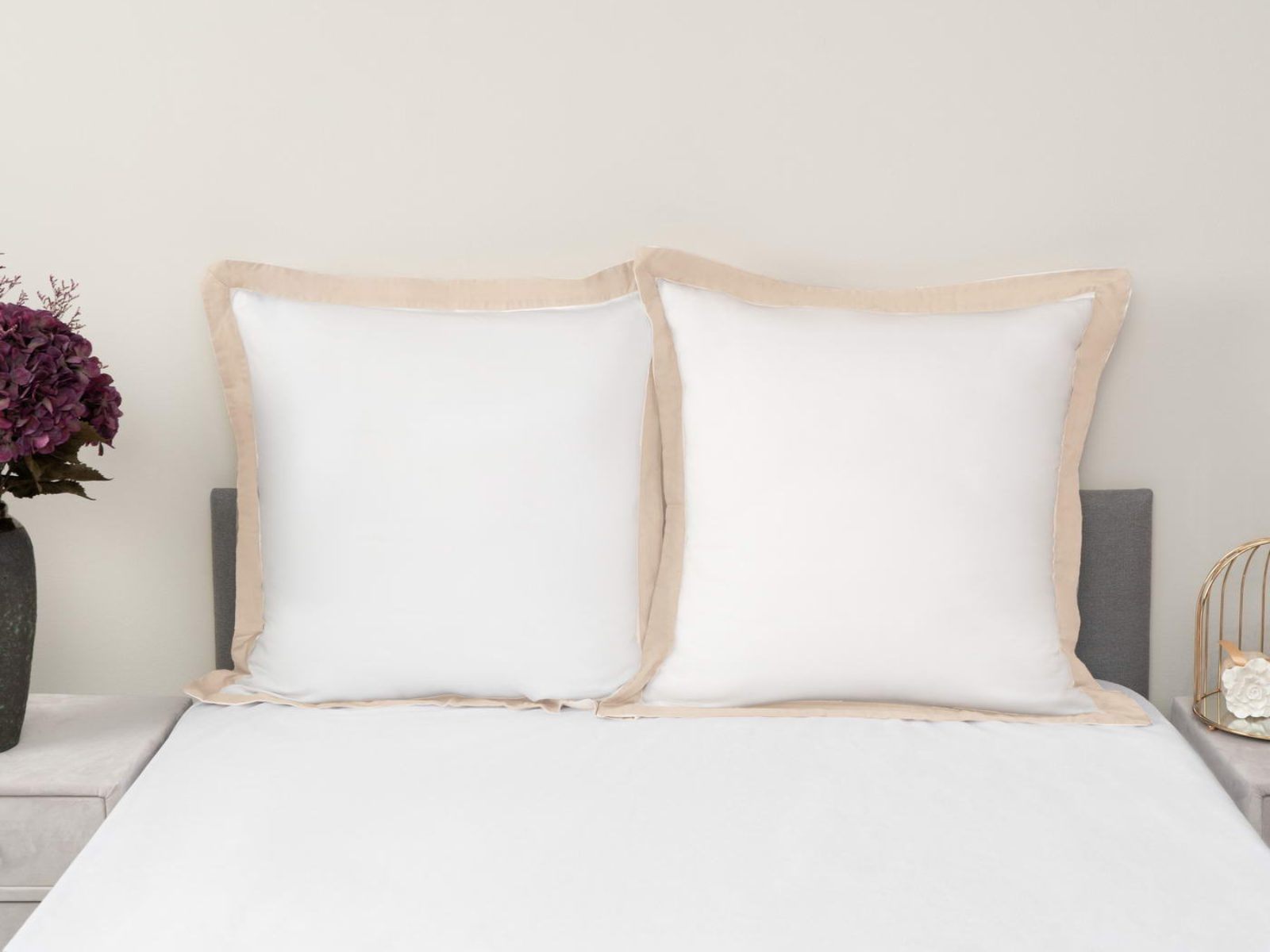 Комплект наволочек Флер изготовлен из высококачественного макосатина. Этот материал прочный, но мягкий, его гладкая поверхность придает постельному белью красивый внешний вид. Контрастные ушки наволочек придадут Вашей спальне красоту и изысканность. Они послужит замечательным подарком для родных и друзей.