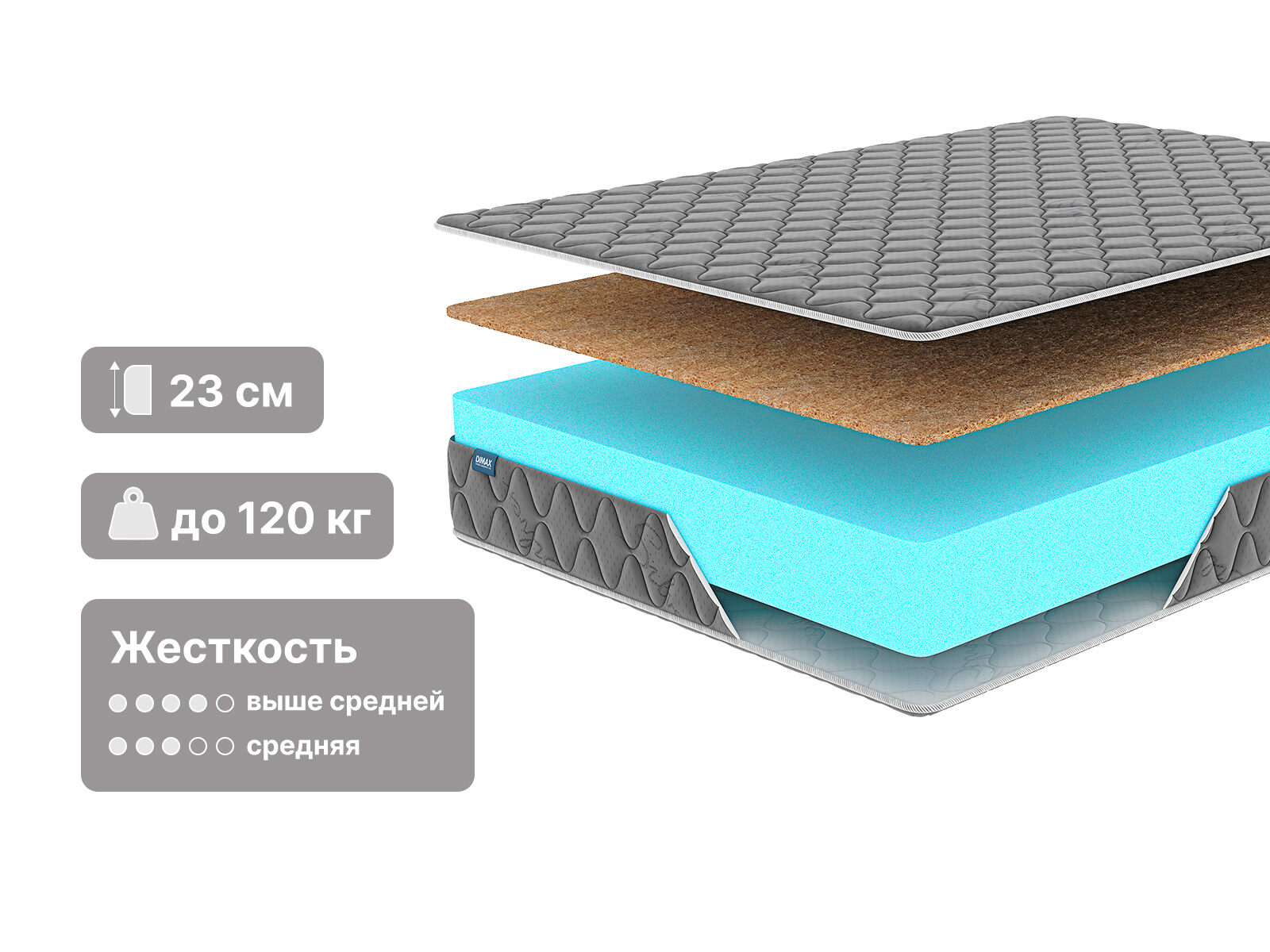 Натуральная койра кокоса добавляет жёсткости и наделяет спальную поверхность более яркими ортопедическими качествами – она дублирует S-образный изгиб позвоночника, сохраняя его естественное положении на протяжении всей ночи.