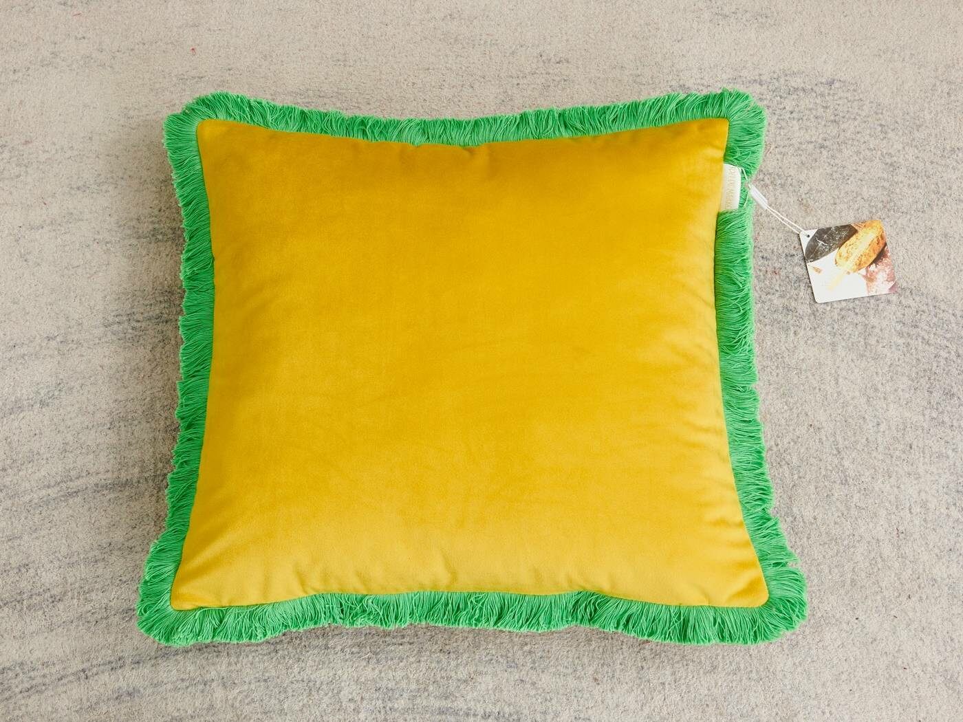 Коллекция пошита из мягкого и приятного на ощупь велюра плотностью 250г/м2. Наволочки с контрастной хлопковой бахромой добавят ярких акцентов и жизнерадостности в ваш интерьер. Большой выбор расцветок поможет расставить цветовой акцент и подчеркнет индивидуальность Вашей гостиной.