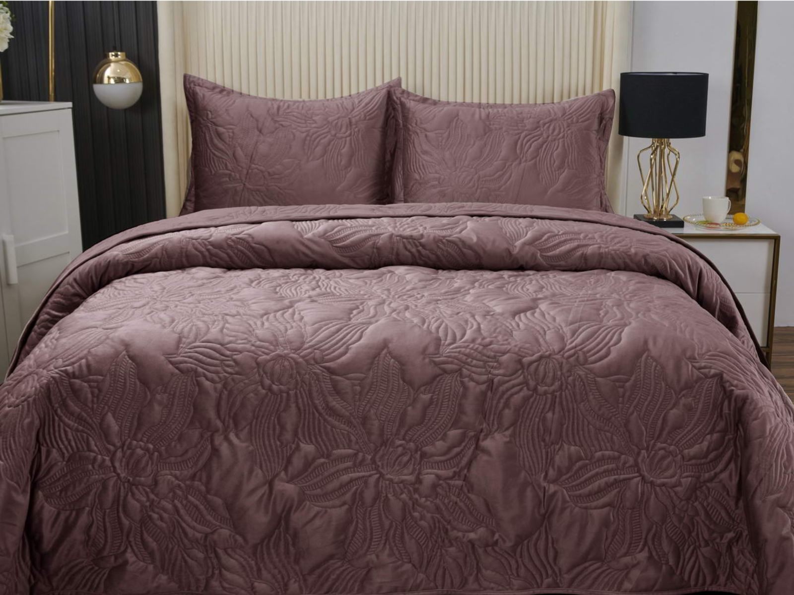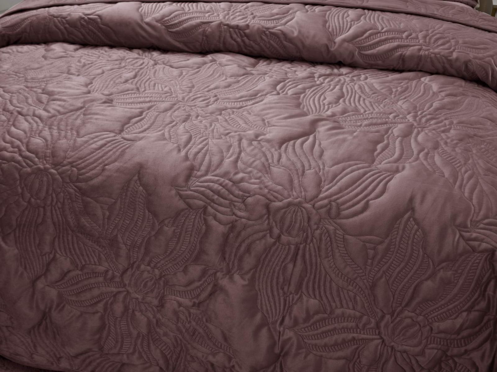 Велюровое покрывало Элис – это прекрасный подарок, который можно сделать своему дому. Декоративная строчка в виде цветов орхидеи подчеркивает утонченность изделия. Покрывало выполнено в восьми трендовых цветах, оно подойдет ко многим интерьерам.