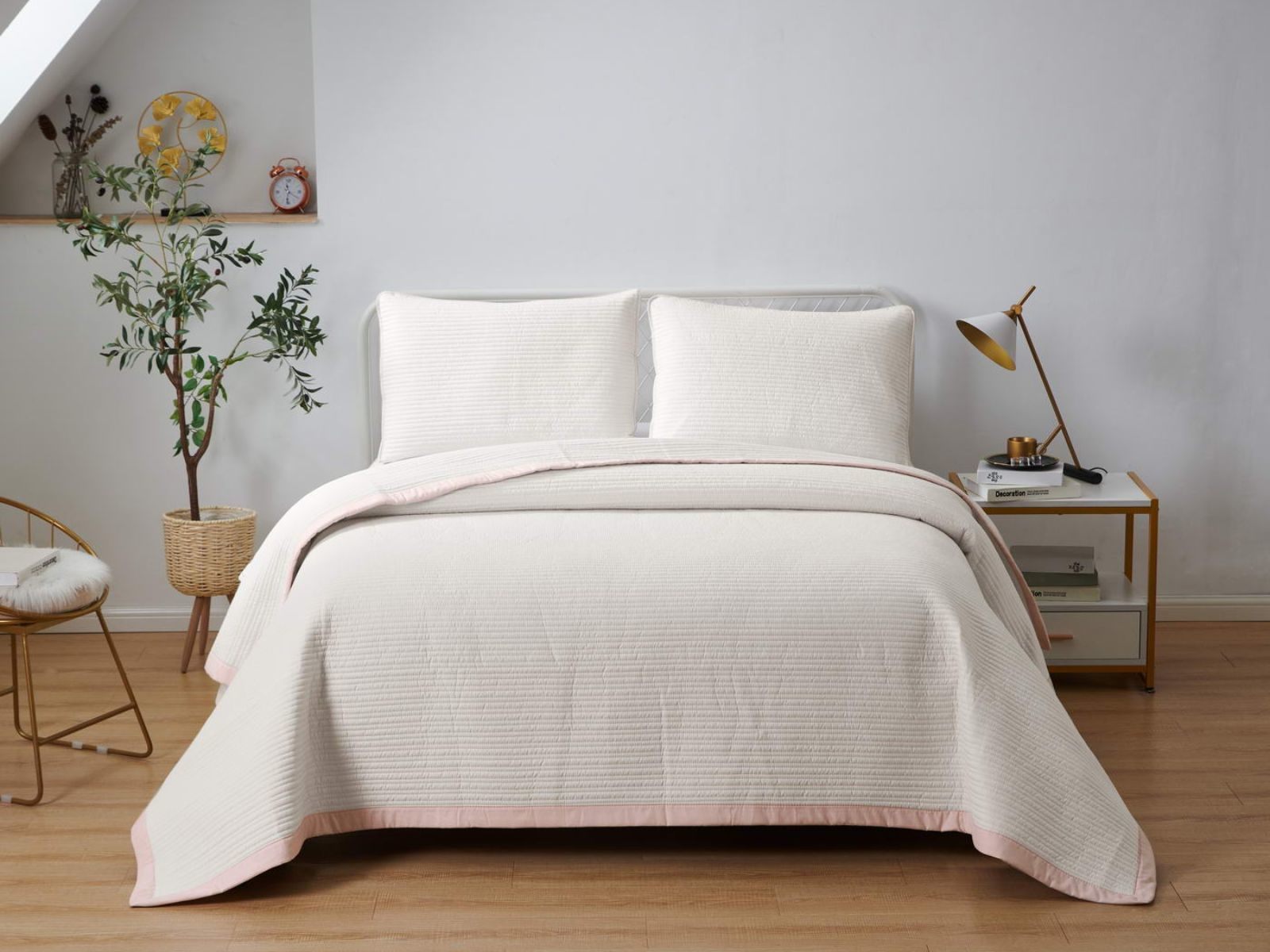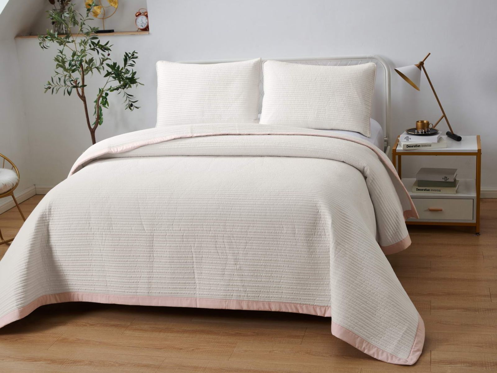 Легкое, стеганое и очень красивое покрывало с контрастной окантовкой обязательно украсит вашу комнату. Покрывало изготовлено из смеси хлопка и вискозы, поэтому оно легкое, но очень прочное. При правильном уходе за покрывалом Марисоль, оно прослужит долгое время, не полиняет и не потеряет форму.