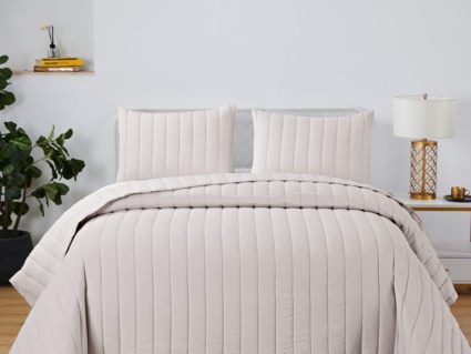 Это не просто практичное и долговечное покрывало. Это универсальное покрывало, которое подойдет к любому интерьеру и разнообразит его. Покрывало можно использовать как легкое одеяло. Оно выполнено в восьми спокойных оттенках: мокко, крем, лиловый, изумруд, розовый, бежевый, серый и пудра. Стеганое покрывало Микаэль прослужит очень долго, оно не полиняет и не вытянется. Стежка придает покрывалам не только прочность, но изысканность и изящество.