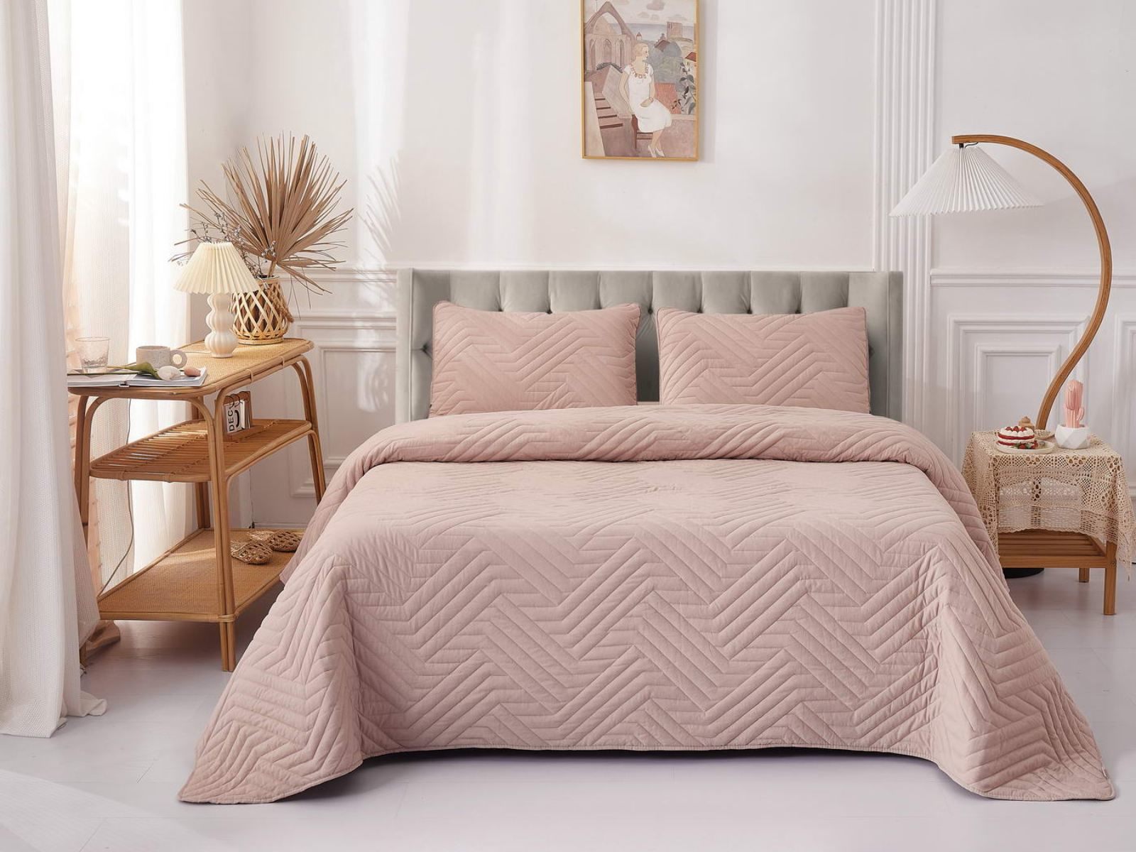 Покрывала Мориц украшены лаконичным геометрическим орнаментом. Сочетание углов и линий органично впишется в самые разнообразные интерьерные стили. Покрывала выполнены в восьми оттенках: крем, пудра, антрацит, бежевый, серый, шоколад, терракот, синий. Такая цветовая гамма не оставят никого равнодушным.