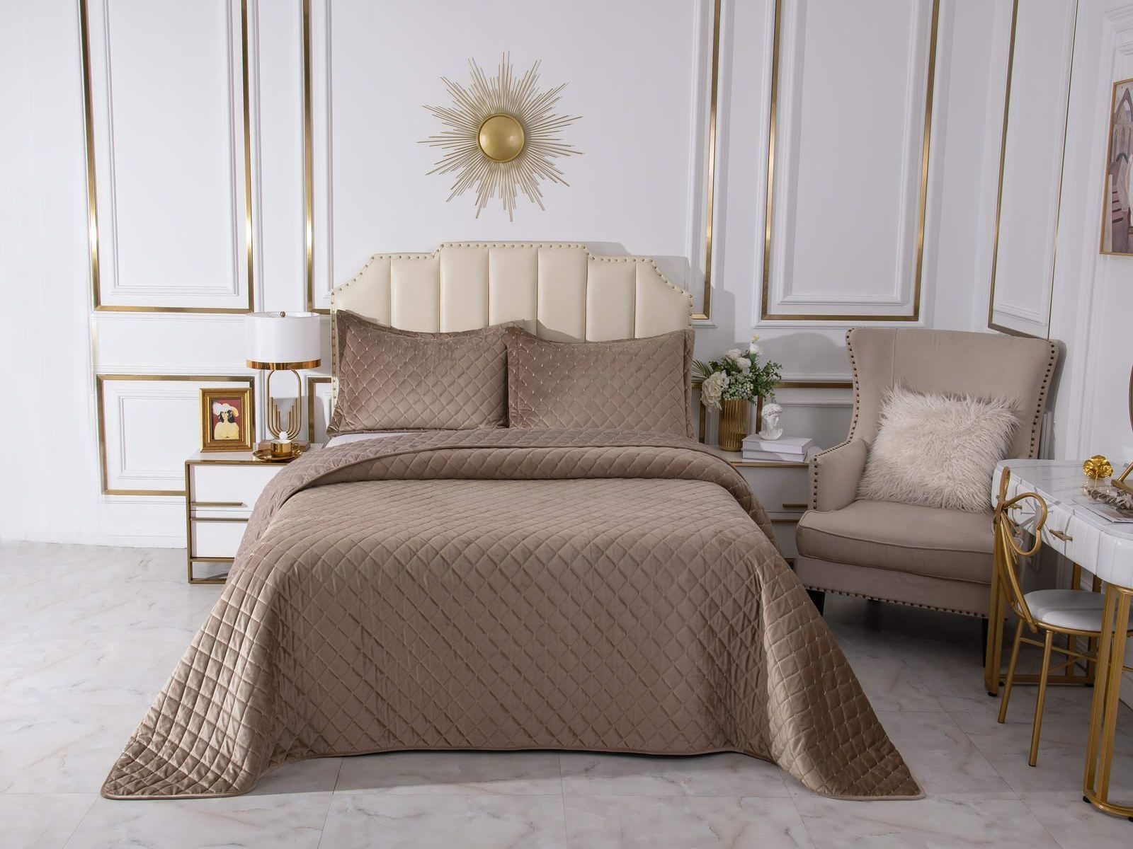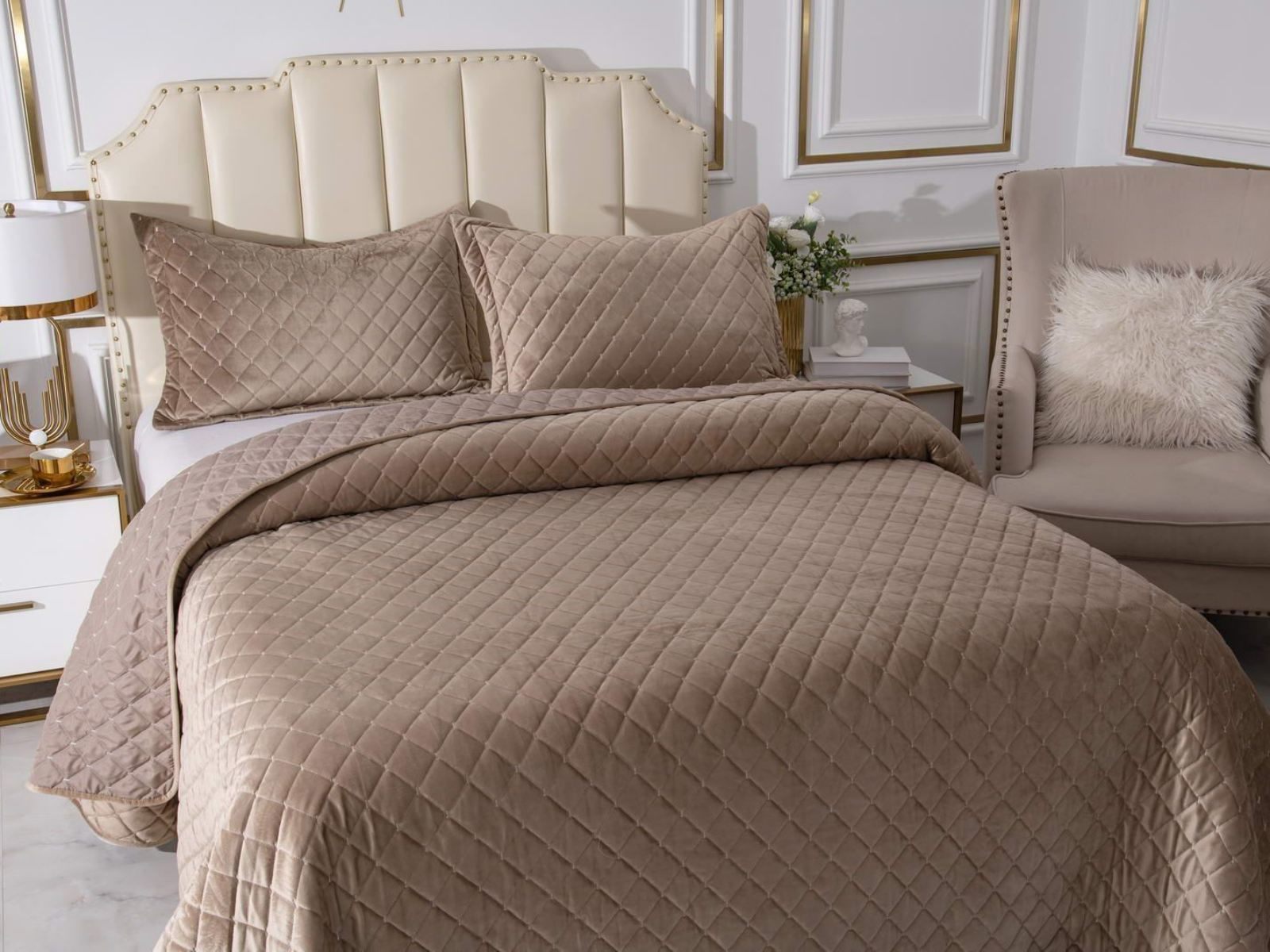 Дизайнеры Sofi De Marko создали серию домашнего текстиля Натаниэль, создающую ощущение настоящей королевской роскоши: безупречность кроя сочетается с элегантностью расцветок и мягкостью велюра. Для изготовления текстиля используются только натуральные материалы высокого качества. Ваш дом станет настоящей зоной комфорта, а друзья и близкие оценят вашу любовь и заботу.