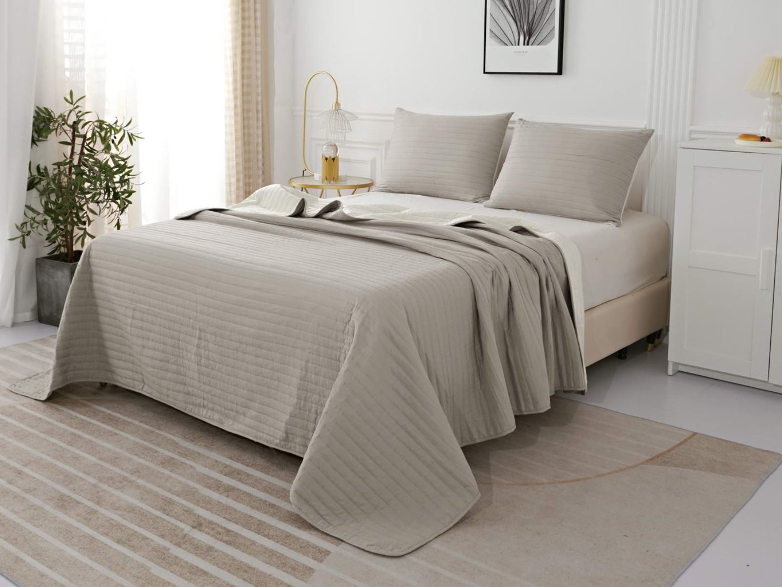 Двусторонние стеганные покрывала Самуэль выполнены из вискозы и хлопка, они легкие и прочные. В комплект входят покрывало и одна либо две наволочки (50х70 см) из аналогичного материала в зависимости от размера, вы можете использовать покрывало по назначению, либо в качестве постельного белья. В любом случае, вы будете в восторге от этого комплекта!