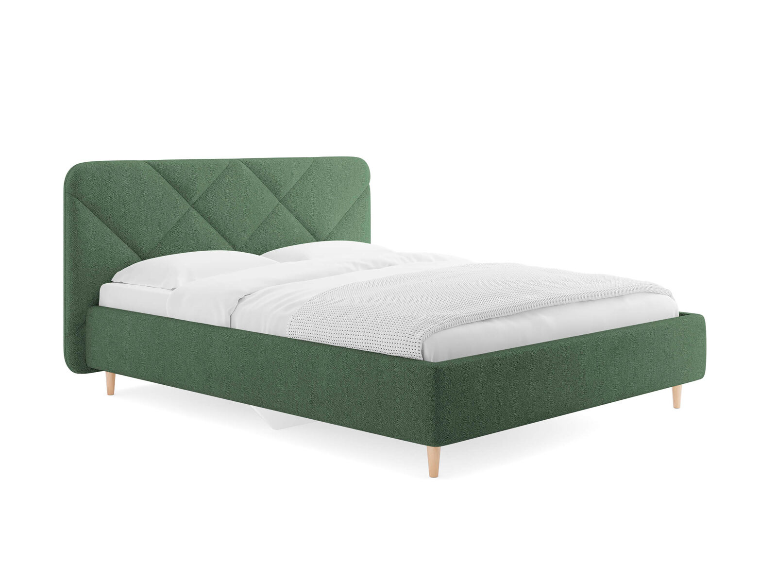 Кровать Taylor выглядит эффектно благодаря изголовью со стежкой в виде крупного абстрактного рисунка. Закругленные углы, объем и мягкость изголовья создадут в вашей спальне атмосферу релакса и уюта. Благодаря высоким опорам из натурального дерева, модель будет смотреться актуально в интерьерах в скандинавском и современном стиле.